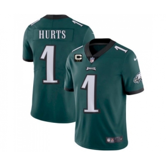 >Men's Eagles 2022 #1 Jalen Hurts Green With 2-star C Patch Vapor Untouchable Limited Stitched NFL Jersey