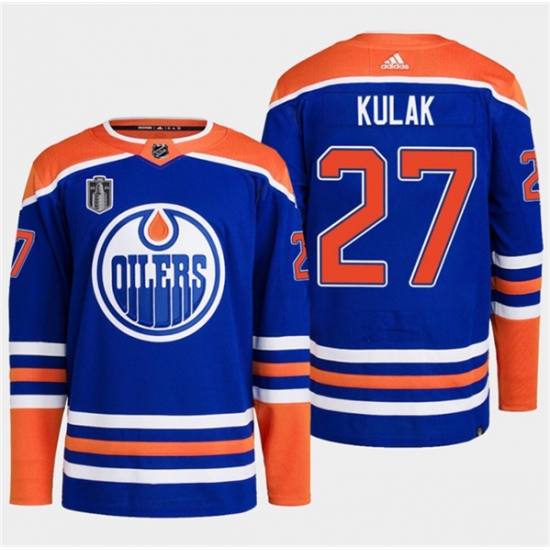 Men's Edmonton Oilers #27 Brett Kulak Royal 2024 Stanley Cup Final Stitched Jersey