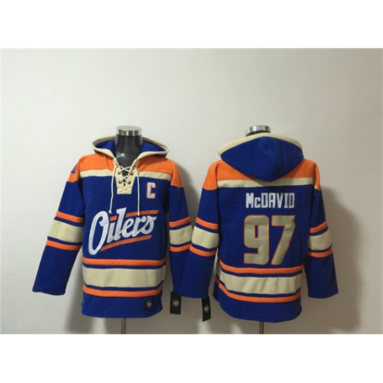 Men's Edmonton Oilers #97 Connor McDavid Blue Lace-Up Pullover Hoodie