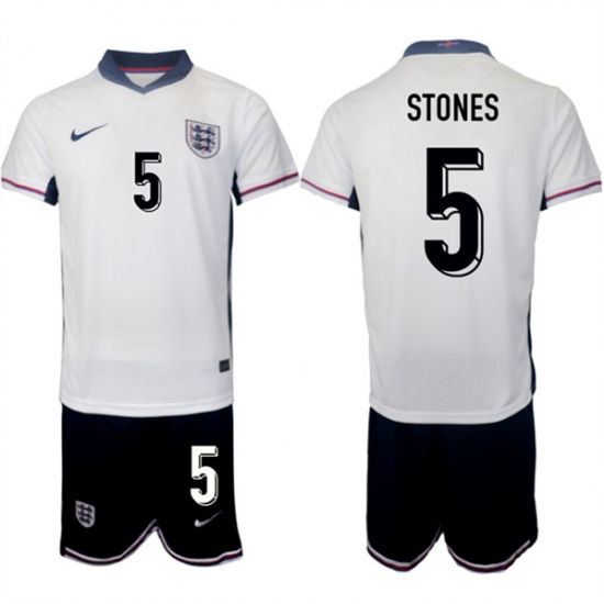 >Men's England #5 John Stones 2024-25 White Home Soccer Jersey Suit