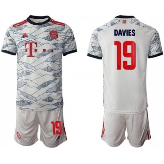 >Men's FC Bayern München #19 Alphonso Davies White Away Soccer Jersey With Shorts