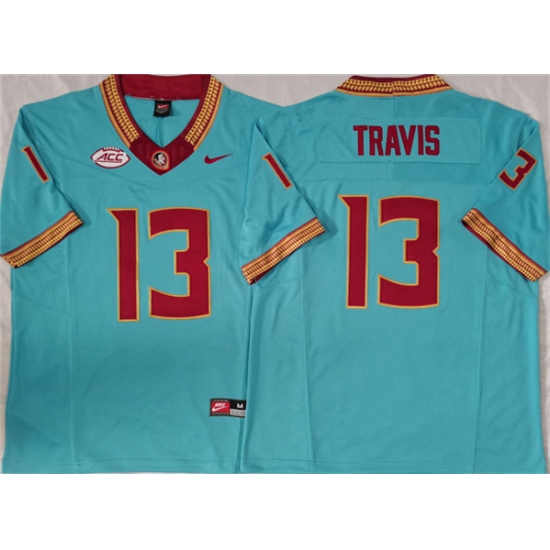 >Men's Florida State Seminoles #13 Jordan Travis Teal 2023 F.U.S.E Stitched Jersey
