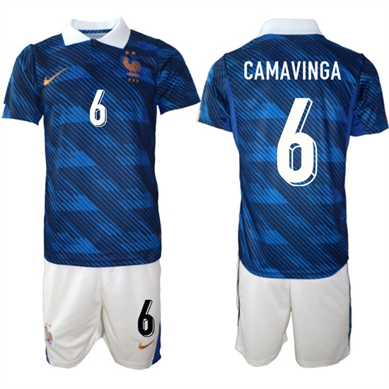 Men's France #6 Eduardo Camavinga Blue 2024-25 Home Soccer Jersey Suit