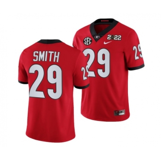 Men’s Georgia Bulldogs #29 Christopher Smith 2022 Patch Red College Football Stitched Jersey