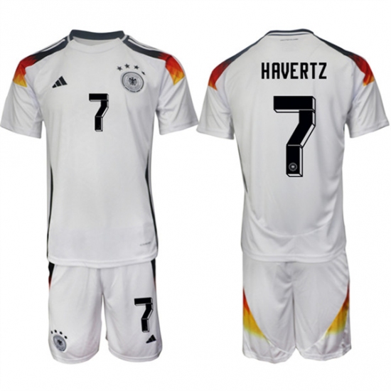 Men's Germany #7 Kai Havertz White 2024-25 Home Soccer Jersey Suit