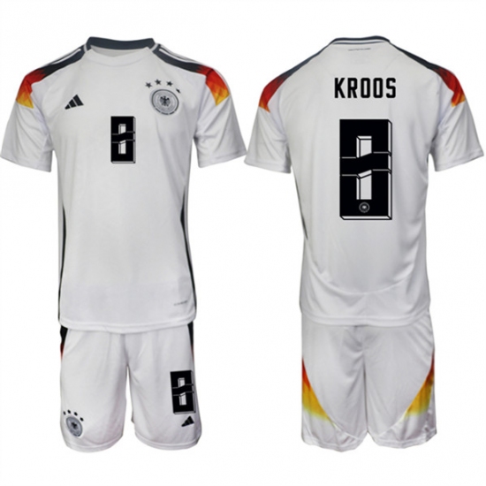 Men's Germany #8 Toni Kroos White 2024-25 Home Soccer Jersey Suit