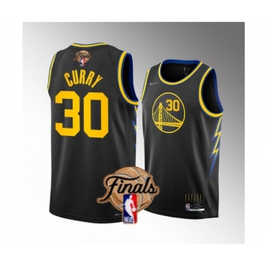 >Men's Golden State Warriors #30 Stephen Curry 2022 Black NBA Finals Stitched Jersey