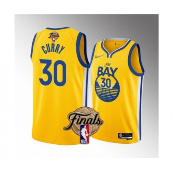 >Men's Golden State Warriors #30 Stephen Curry 2022 Yellow NBA Finals Stitched Jersey
