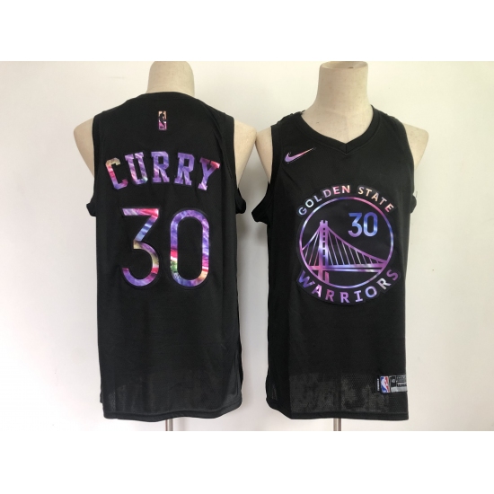 >Men's Golden State Warriors #30 Stephen Curry Black Iridescent Holographic 2021 Jersey