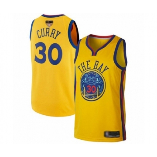 >Men's Golden State Warriors #30 Stephen Curry Swingman Gold 2019 Basketball Finals Bound Basketball Jersey - City Edition
