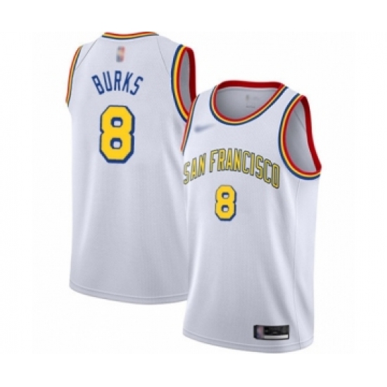 >Men's Golden State Warriors #8 Alec Burks Swingman White Hardwood Classics Basketball Jersey - San Francisco Classic Edition