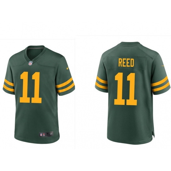 >Men's Green Bay Packers #11 Jayden Reed Green Stitched Game Jersey