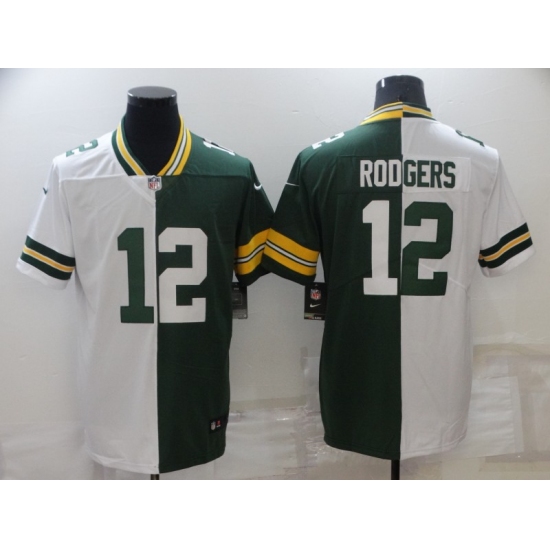 Men's Green Bay Packers #12 Aaron Rodgers Green White Limited Split Fashion Football Jersey
