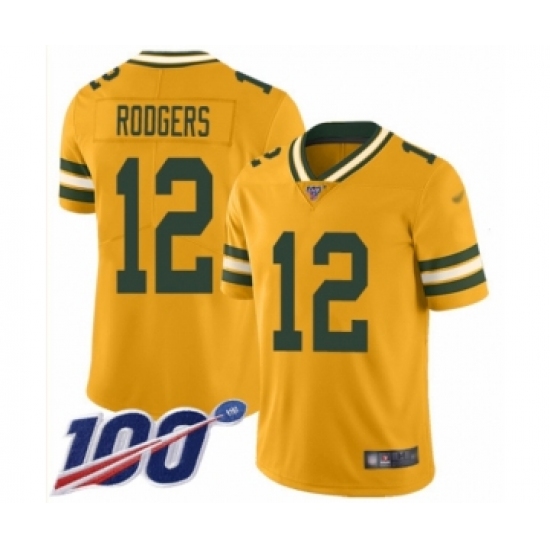 Men's Green Bay Packers #12 Aaron Rodgers Limited Gold Inverted Legend 100th Season Football Jersey