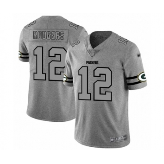 Men's Green Bay Packers #12 Aaron Rodgers Limited Gray Team Logo Gridiron Limited Football Jersey
