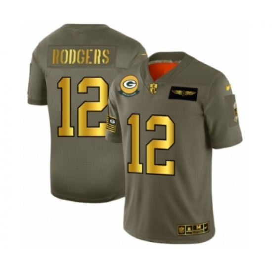 >Men's Green Bay Packers #12 Aaron Rodgers Limited Olive Gold 2019 Salute to Service Football Jersey