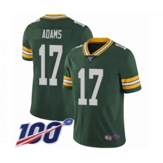 >Men's Green Bay Packers #17 Davante Adams Green Team Color Vapor Untouchable Limited Player 100th Season Football Jersey