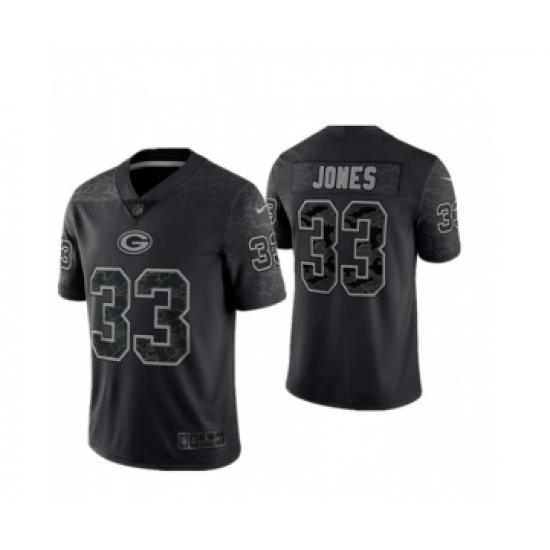 Men's Green Bay Packers #33 Aaron Jones Black Reflective Limited Stitched Football Jersey