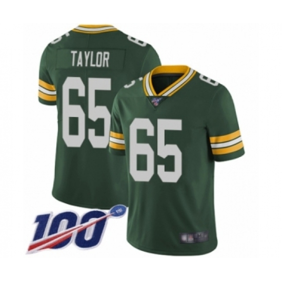 >Men's Green Bay Packers #65 Lane Taylor Green Team Color Vapor Untouchable Limited Player 100th Season Football Jersey