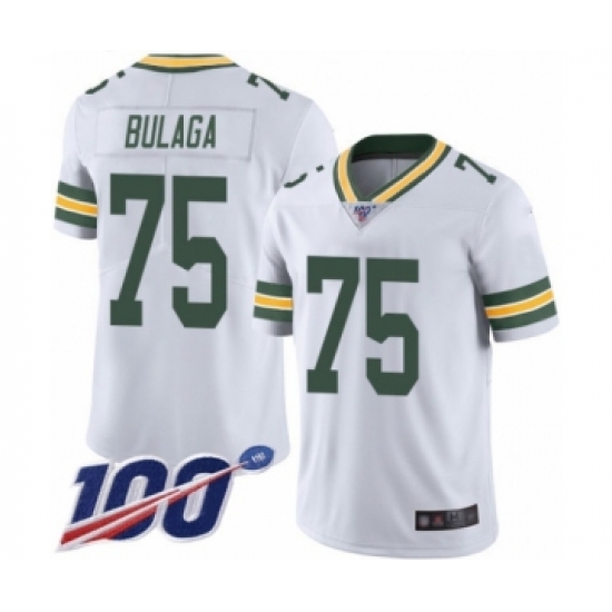 >Men's Green Bay Packers #75 Bryan Bulaga White Vapor Untouchable Limited Player 100th Season Football Jersey