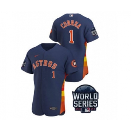Men's Houston Astros #1 Carlos Correa 2021 Navy World Series Flex Base Stitched Baseball Jersey