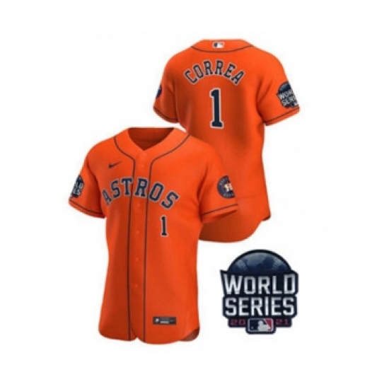 Men's Houston Astros #1 Carlos Correa 2021 Orange World Series Flex Base Stitched Baseball Jersey