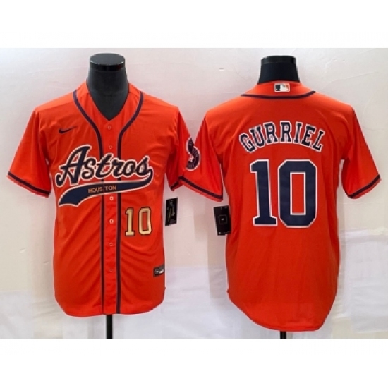 Men's Houston Astros #10 Yuli Gurriel Number Orange Cool Base Stitched Baseball Jersey