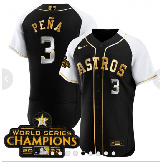 Men's Houston Astros #3 Jeremy Pena Number Black Gold 2022 World Series Stitched Baseball Jersey