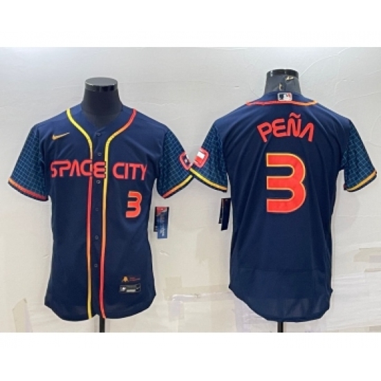 Men's Houston Astros #3 Jeremy Pena Number 2022 Navy Blue City Connect Flex Base Stitched Jersey