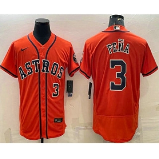 Men's Houston Astros #3 Jeremy Pena Number Orange Stitched MLB Flex Base Nike Jersey