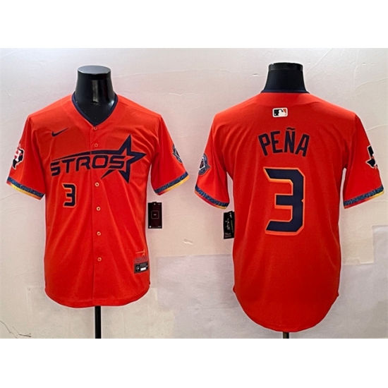 >Men's Houston Astros #3 Jeremy Pena Orange 2025 City Connect With Texas Limited Stitched Baseball Jersey