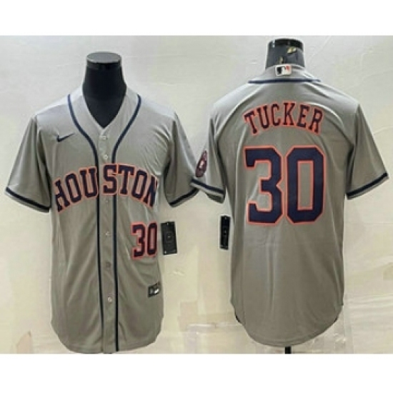 Men's Houston Astros #30 Kyle Tucker Number Grey With Patch Stitched MLB Cool Base Nike Jersey