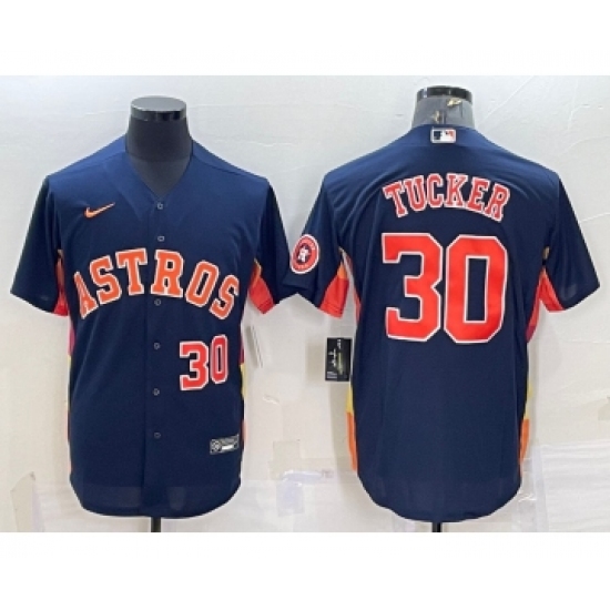 Men's Houston Astros #30 Kyle Tucker Number Navy Blue With Patch Stitched MLB Cool Base Nike Jersey