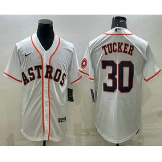 Men's Houston Astros #30 Kyle Tucker White With Patch Stitched MLB Cool Base Nike Jersey