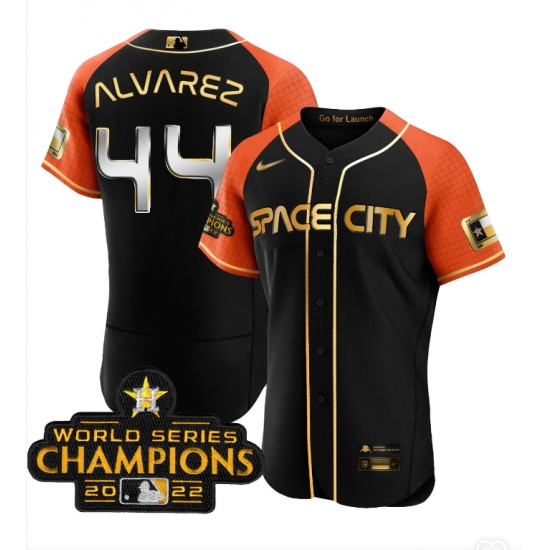 Men's Houston Astros #44 Yordan Alvarez Number Black 2022 World Series patches Jersey