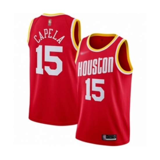 >Men's Houston Rockets #15 Clint Capela Authentic Red Hardwood Classics Finished Basketball Jersey