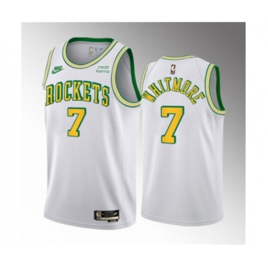 >Men's Houston Rockets #7 Cam Whitmore White 2023 Draft Classic Edition Stitched Basketball Jersey