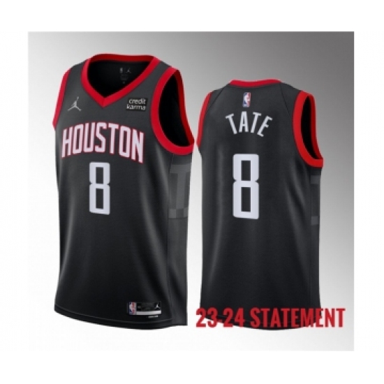 >Men's Houston Rockets #8 Jae'Sean Tate Black 2023 Statement Edition Stitched Basketball Jersey