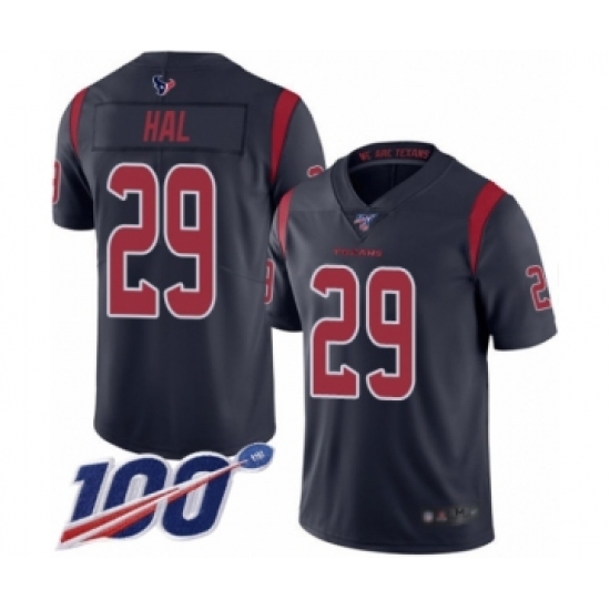 >Men's Houston Texans #29 Andre Hal Limited Navy Blue Rush Vapor Untouchable 100th Season Football Jersey