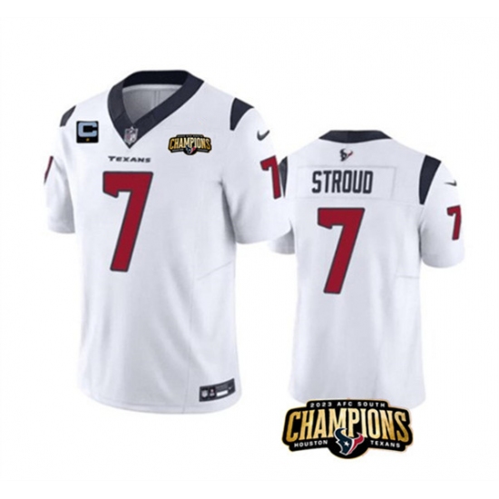 >Men's Houston Texans #7 C.J. Stroud White 2023 F.U.S.E. AFC South Champions And 1-Star C Vapor Untouchable Limited Football Stitched Jersey