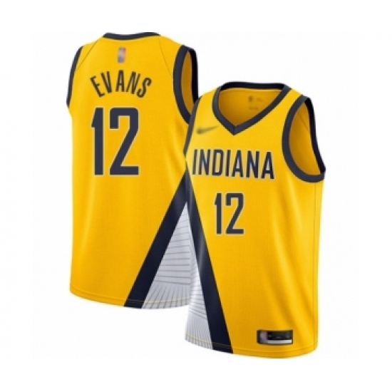 >Men's Indiana Pacers #12 Tyreke Evans Authentic Gold Finished Basketball Jersey - Statement Edition