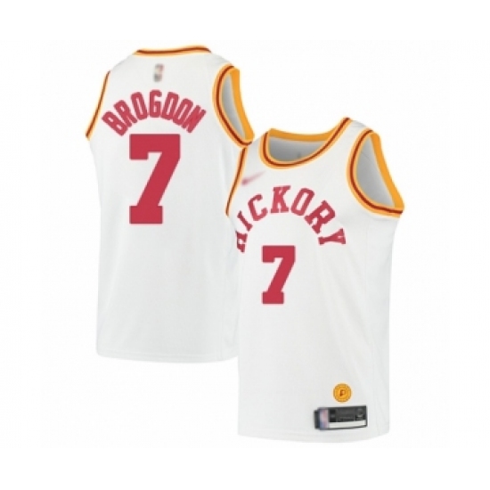 >Men's Indiana Pacers #7 Malcolm Brogdon Authentic White Hardwood Classics Basketball Jersey