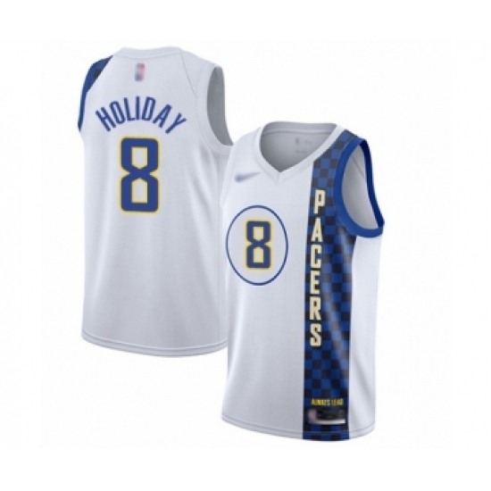 >Men's Indiana Pacers #8 Justin Holiday Swingman White Basketball Jersey - 2019 20 City Edition