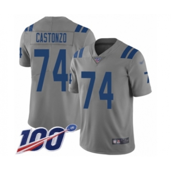 >Men's Indianapolis Colts #74 Anthony Castonzo Limited Gray Inverted Legend 100th Season Football Jersey