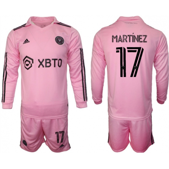 >Men's Inter Miami CF #17 Martínez 2023-24 Pink Home Soccer Jersey Suit