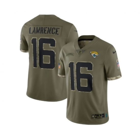>Men's Jacksonville Jaguars #16 Trevor Lawrence Olive 2022 Salute To Service Limited Stitched Jersey