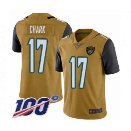 >Men's Jacksonville Jaguars #17 DJ Chark Limited Gold Rush Vapor Untouchable 100th Season Football Jersey