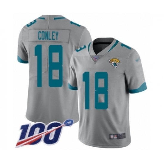 Men's Jacksonville Jaguars #18 Chris Conley Silver Inverted Legend Limited 100th Season Football Jersey