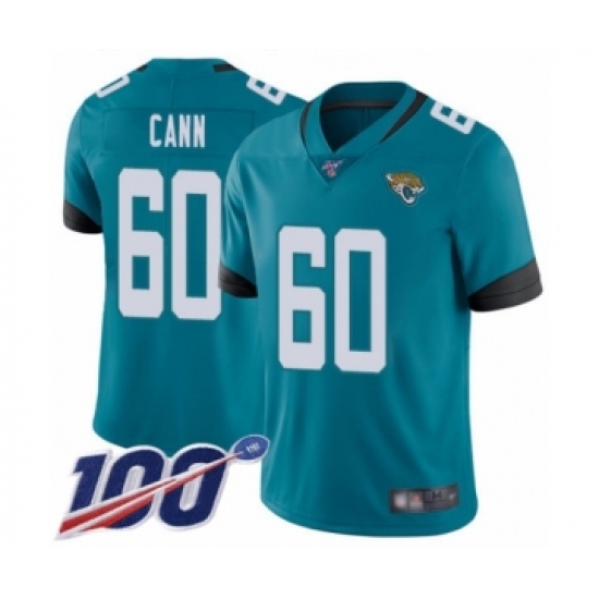 >Men's Jacksonville Jaguars #60 A. J. Cann Teal Green Alternate Vapor Untouchable Limited Player 100th Season Football Jersey
