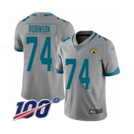 Men's Jacksonville Jaguars #74 Cam Robinson Silver Inverted Legend Limited 100th Season Football Jersey